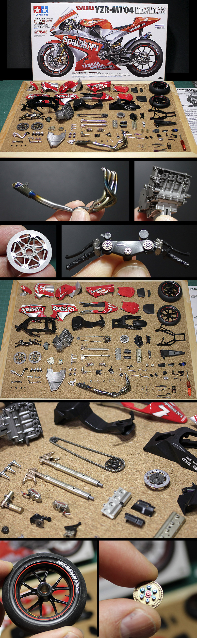 ★タミヤ製キット 1/12 ヤマハ YZR-M1 '04 No.7/No.33 です。 ★パーツは全て塗装、デカール貼り、オーバーコートが完了しで未組立状態です。 ★元箱が不要な場合は送料が変わります。落札後にお知らせください。